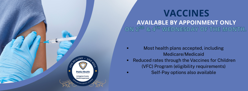 The Livingston County Health Department can provide immunizations for the whole family in our Child and Adult or Travel Immunization Clinics. No matter your age, we all need immunizations to keep us healthy. Vaccination remains our best defense against some still common & sometimes deadly diseases. If it’s been a while since your last vaccination, come see us to discuss which vaccinations may be right for you, and don't forget to schedule your annual seasonal flu/influenza shot.