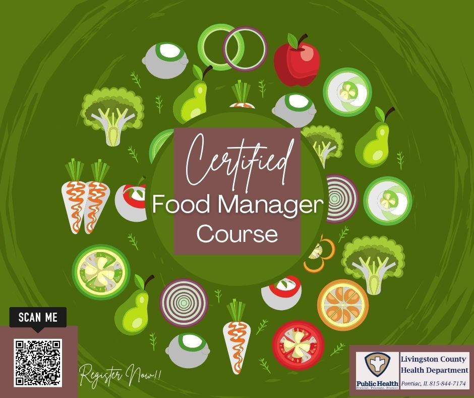 The course will be held Tuesdays March 4th,11th, 18th with the exam on March 25th, 2025. Registration is required. The cost of the course is $140 per student which includes the textbook and all materials. Classes will be held from 1:00 p.m. to 4:00 p.m. on all four days at the Livingston County Health Department (310 East Torrance Avenue, Pontiac). Seating is limited so register as soon as possible.